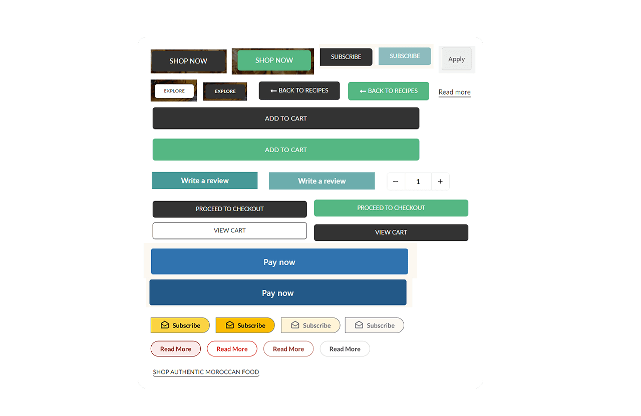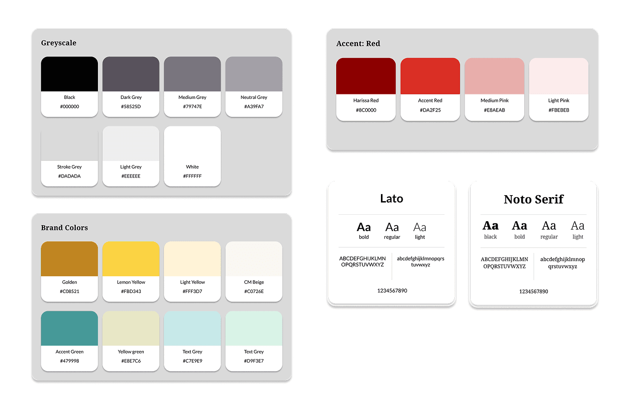 The original muted palette didn’t align with users’ expectations for a Moroccan brand. I introduced a deep red accent (inspired by CM’s bestselling Harissa) complemented by green and yellow. Red, proven to boost conversions and appetite, became the primary CTA color. I tested all new colors for contrast, accessibility, and user response to avoid negative associations with red.